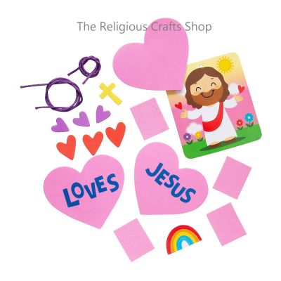 Jesus Loves Me Hanging Craft. This is an easy craft to make and will really appeal to younger children with its bright and simple illustrations and message. Foam shapes are self adhesive and easy for children to arrange and stick. It makes a lovely activity which children can take home to hang up. Finished craft measures approximately 8cm by 28cm.